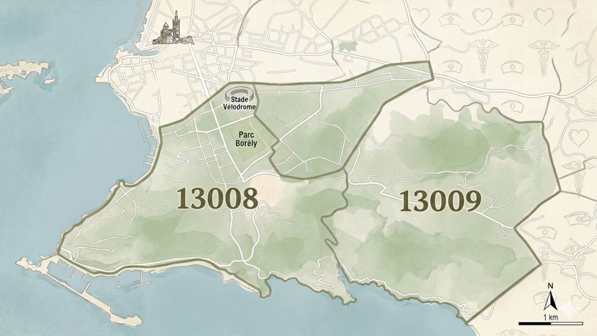 Marseille 13008 : Périer, Prado, Saint-Giniez, David, Bonneveine, Paradis, Sainte-Anne.